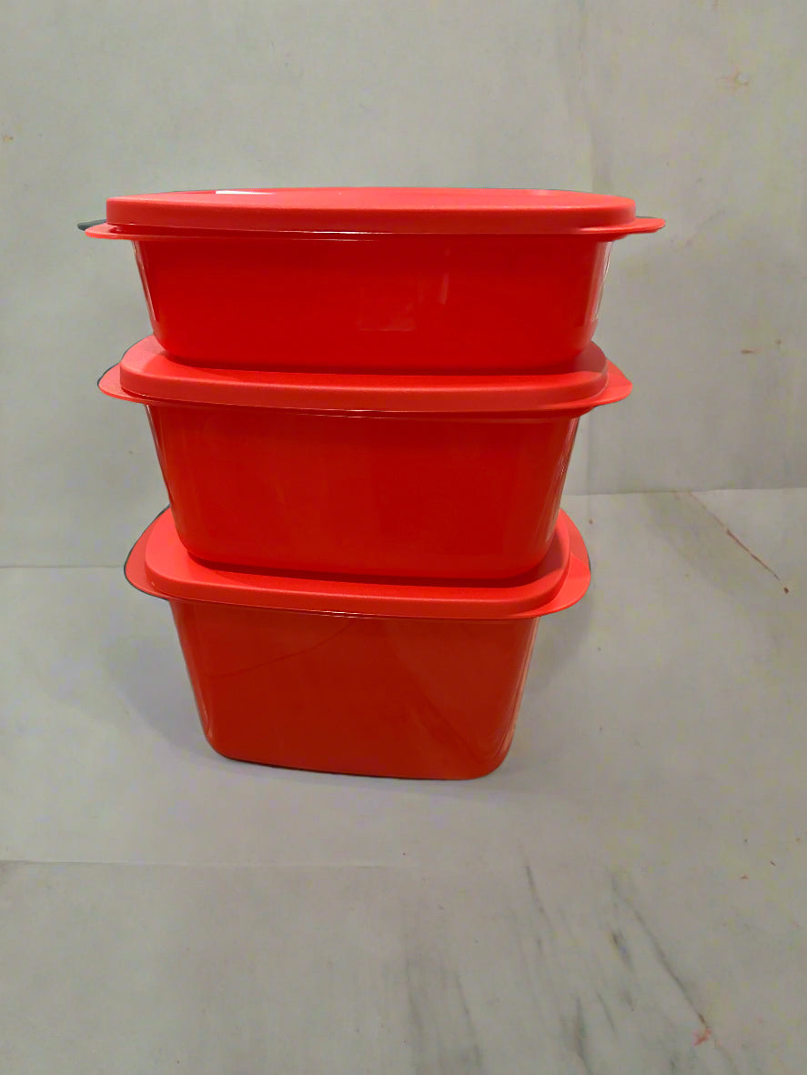 Set of 3 rectangular containers for microwave. 1L (4cups), 1.7L (7 cups) and 2.3L (9cups)
